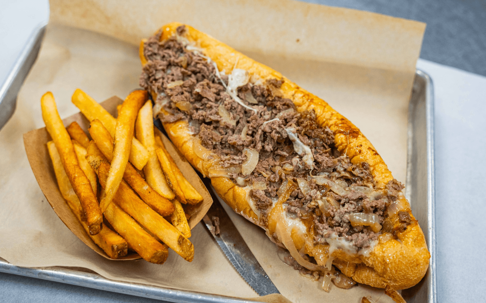 Satisfy your cravings with our deli sandwiches! Enjoy the convenience of pickup or delivery for our mouthwatering hoagies, classic cheesesteaks, and other delectable sandwiches. Whether you're in the mood for American classics or bar & grill favorites, we've got you covered. Order now for a delicious meal at your doorstep!